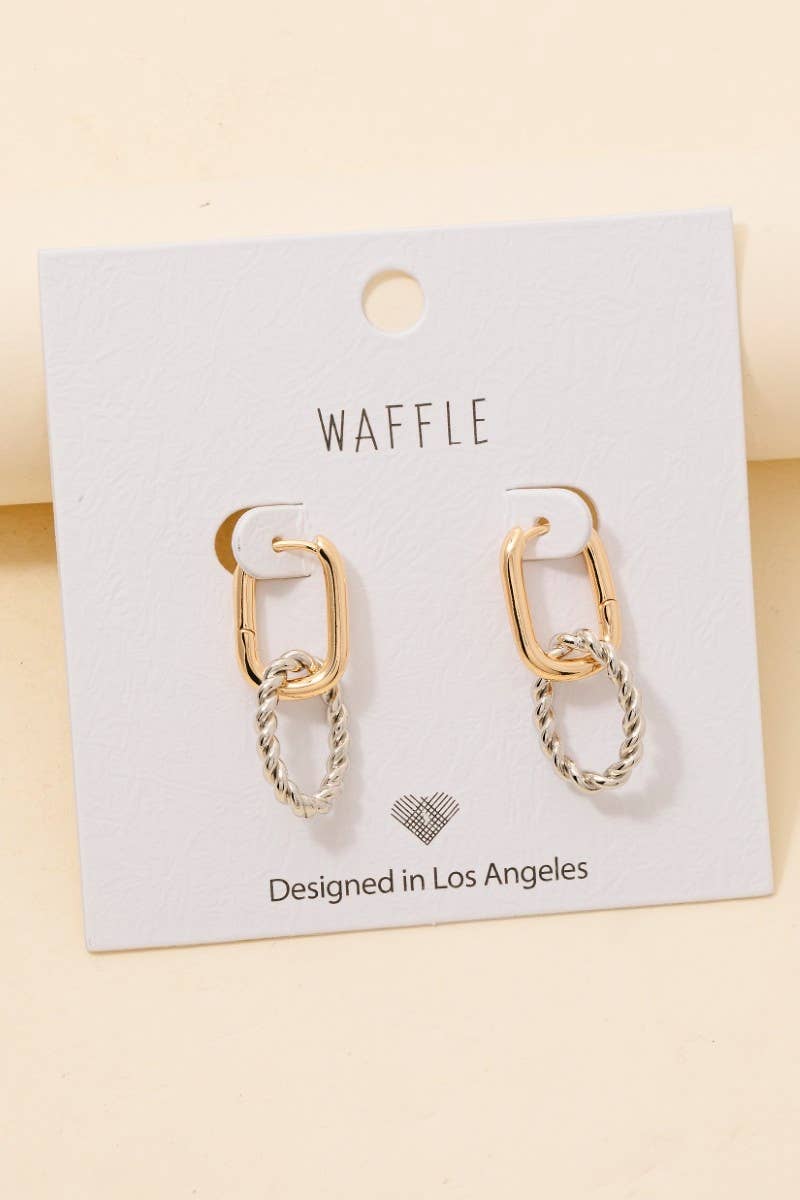 Braided Hoop Charm Rectangle Hinge Hoop Earrings