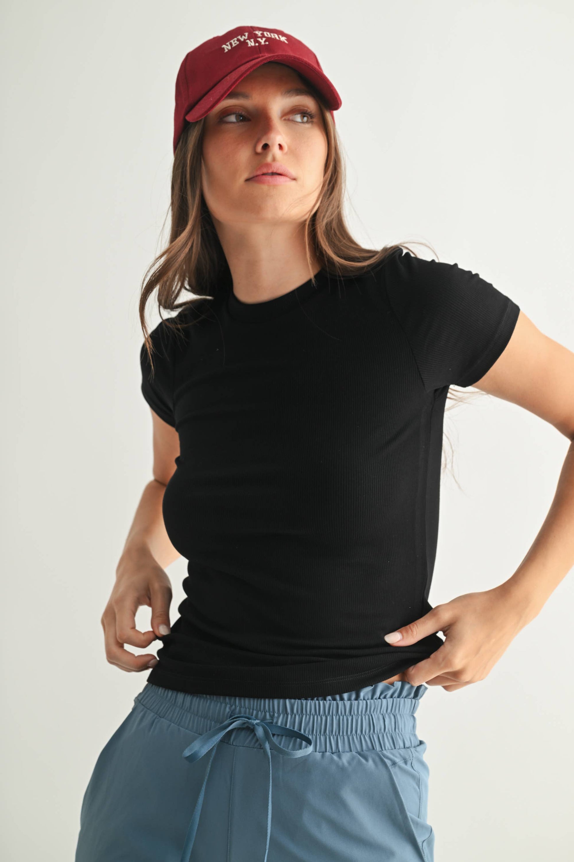 Essential Short-Sleeved Micro-Ribbed Athleisure Top