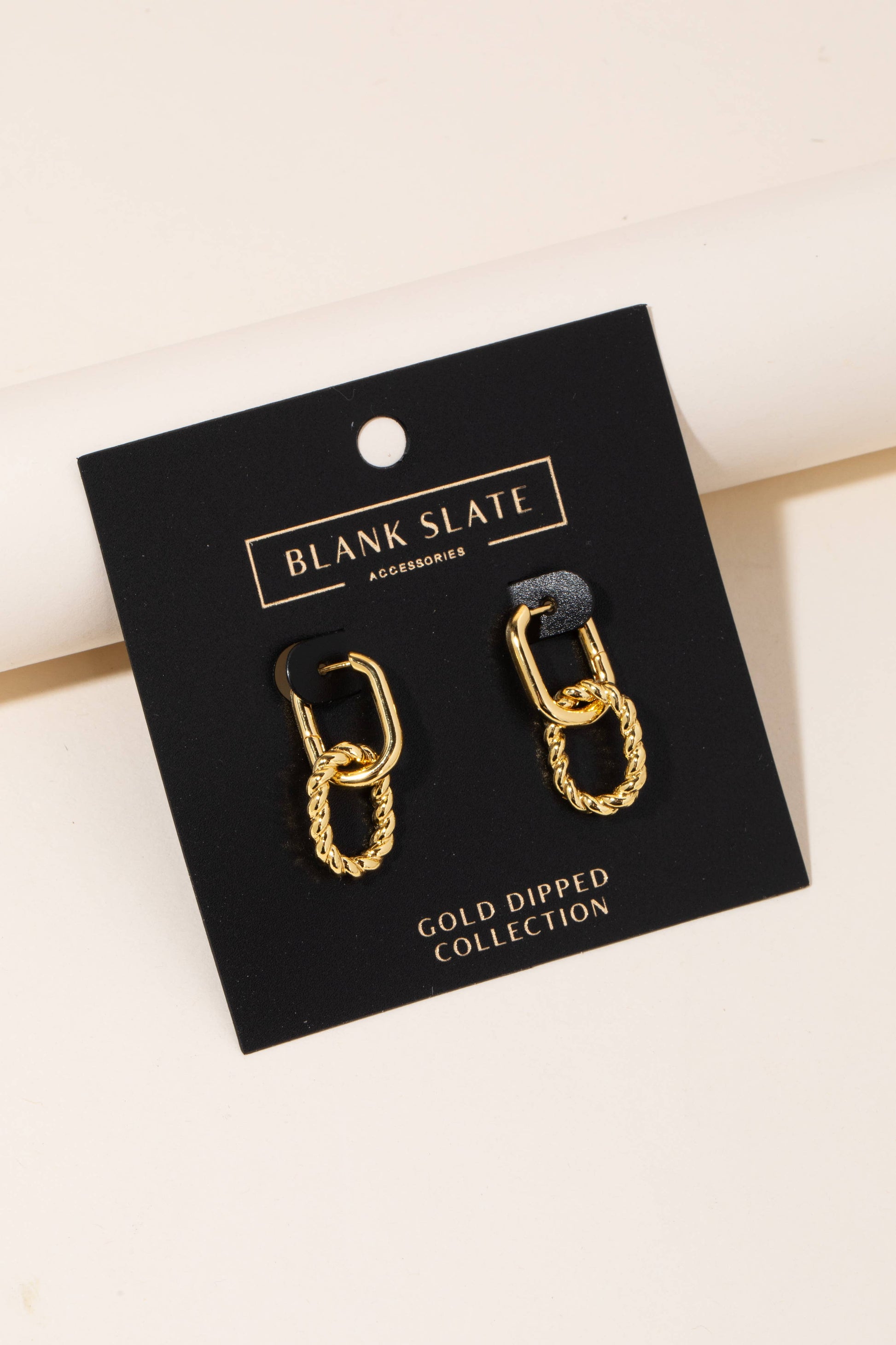 Gold Dipped Linked Oval Hoop Dangle Earrings