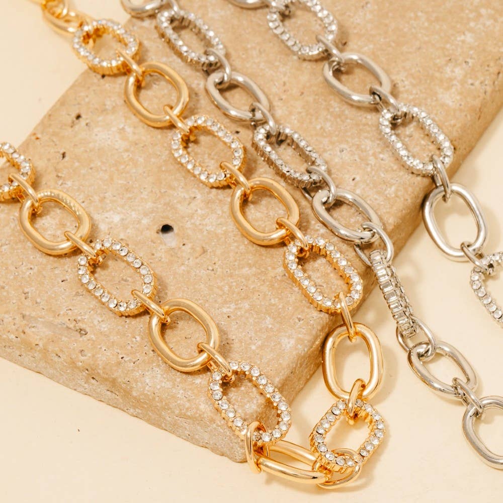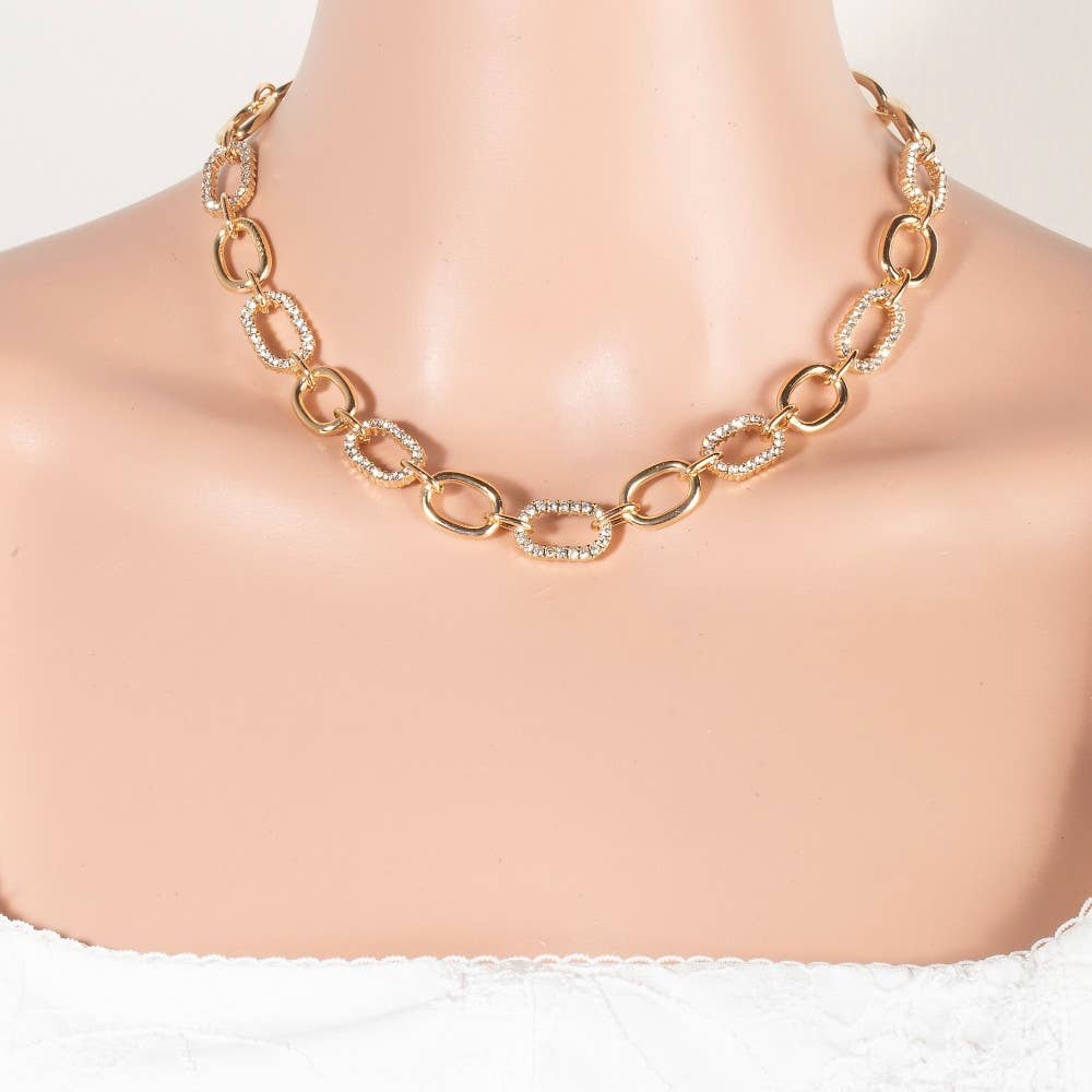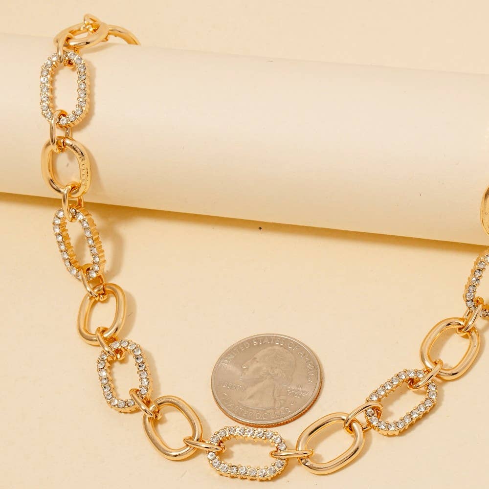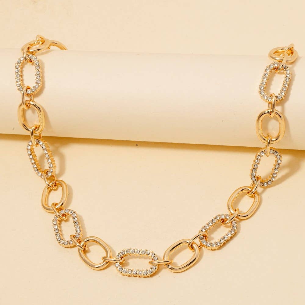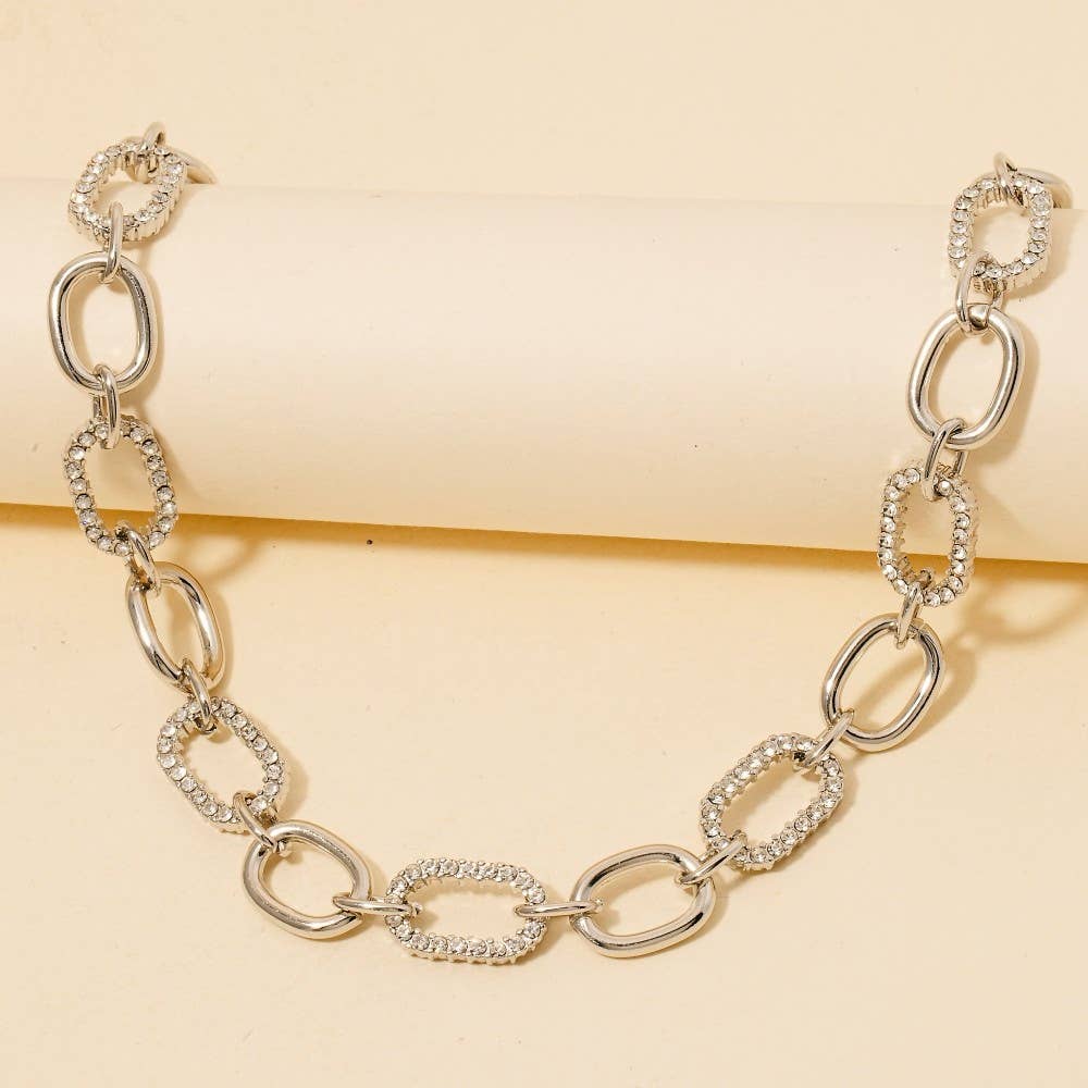 Effortlessly elevate your style, this chain necklace presents a striking mixed oval pave design. Elevate your fashion game with this versatile chain necklace, seamlessly integrating into your signature style. Available in GDCR, RHCR. This item is sold in packs of 1.