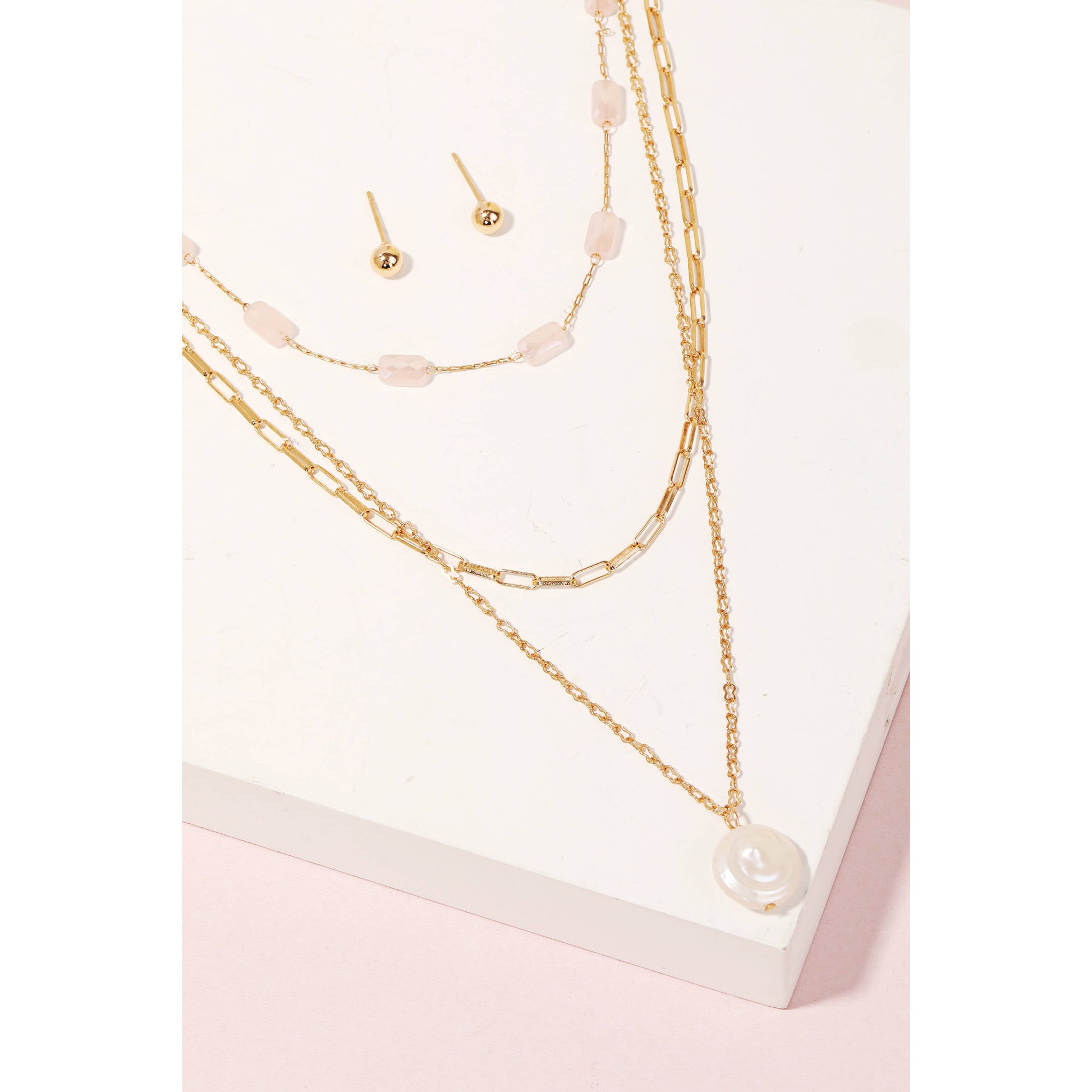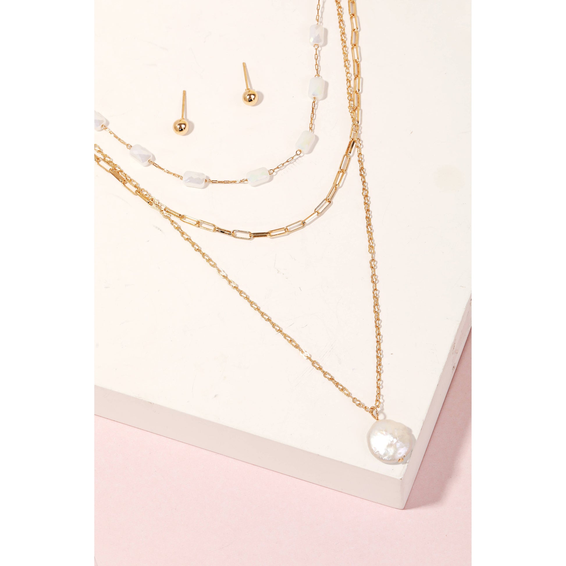 Pearly Disc Layered Chain Necklace Set