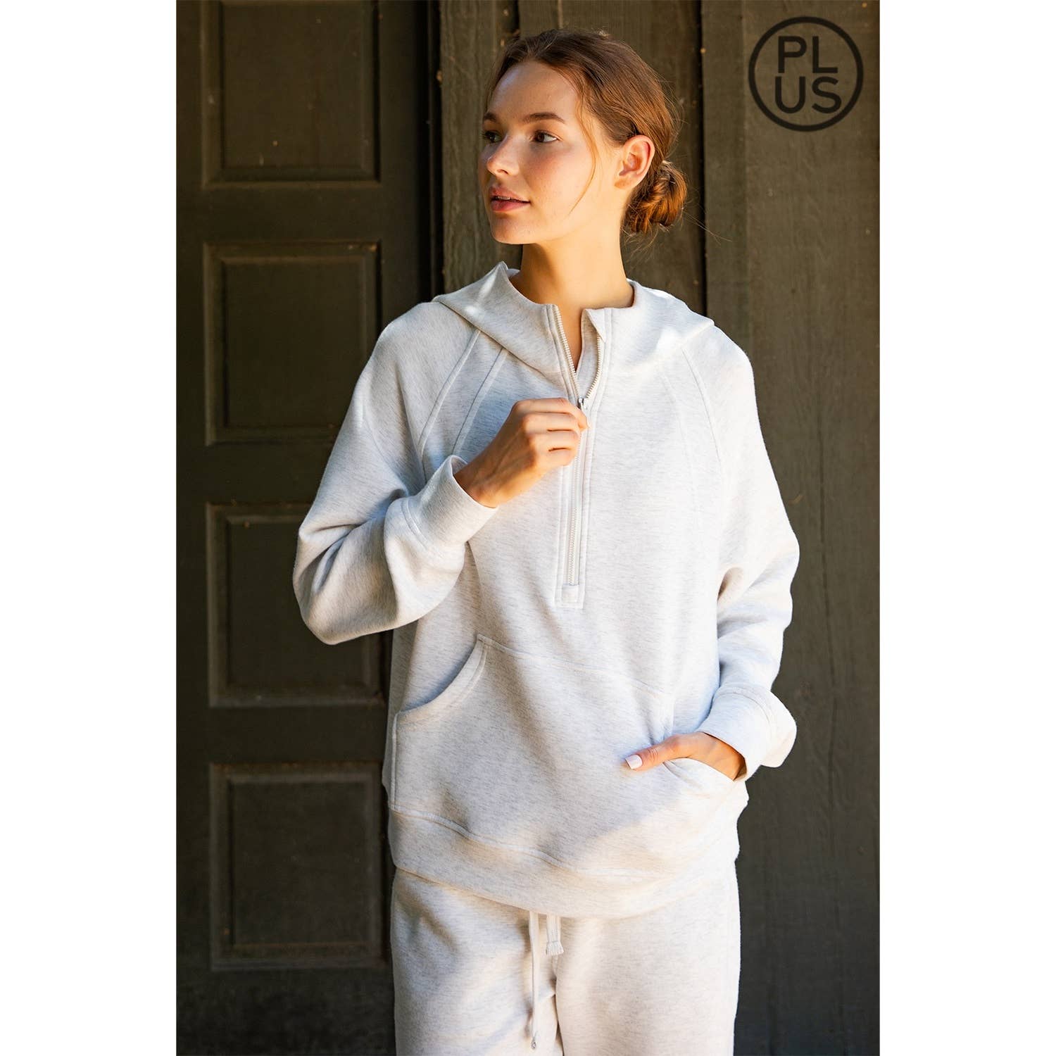 PLUS SIZE MODAL SCUBA QUARTER ZIP HODDIE JACKET