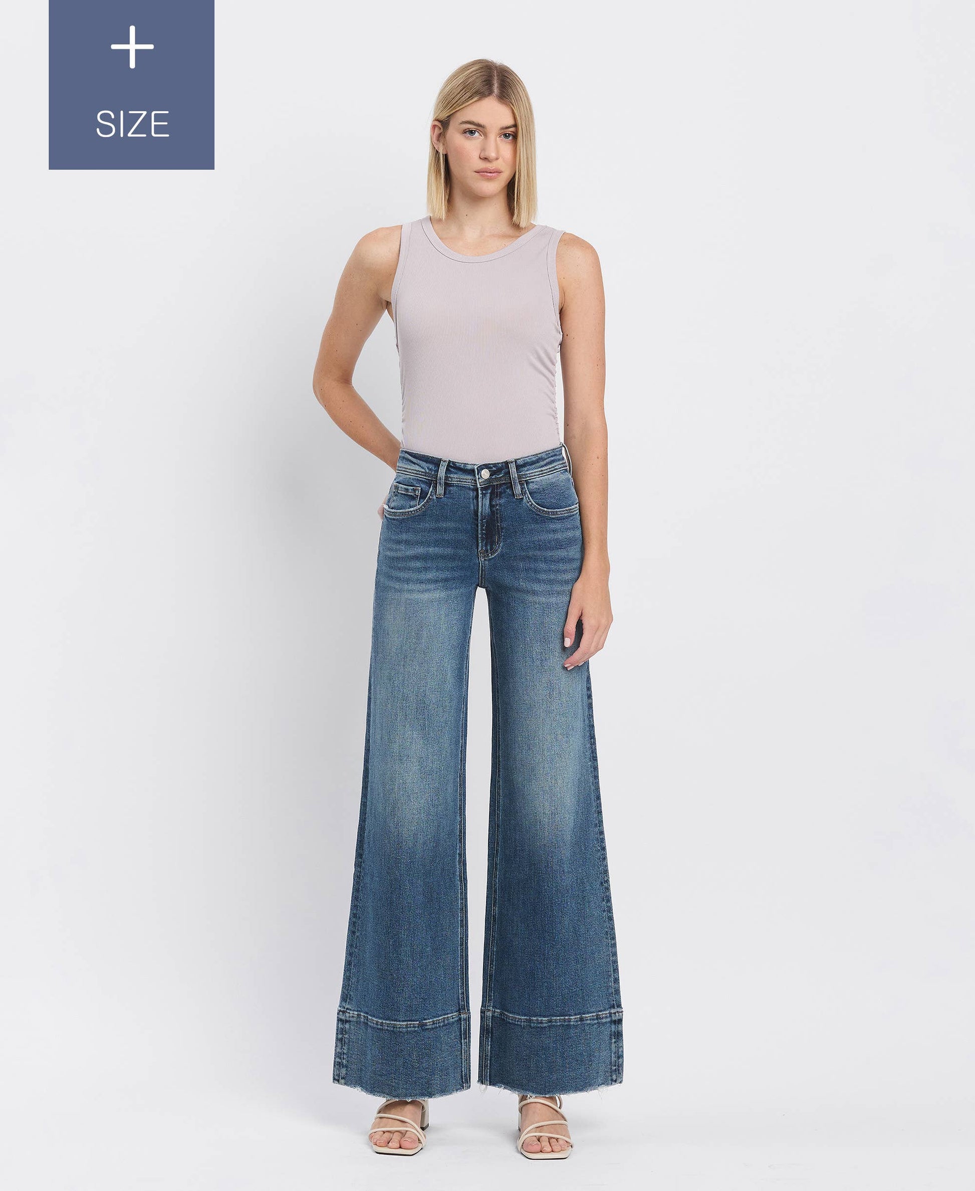 PLUS SIZE TUMMY CONTROL HIGH RISE A LINE WIDE LEG JEANS